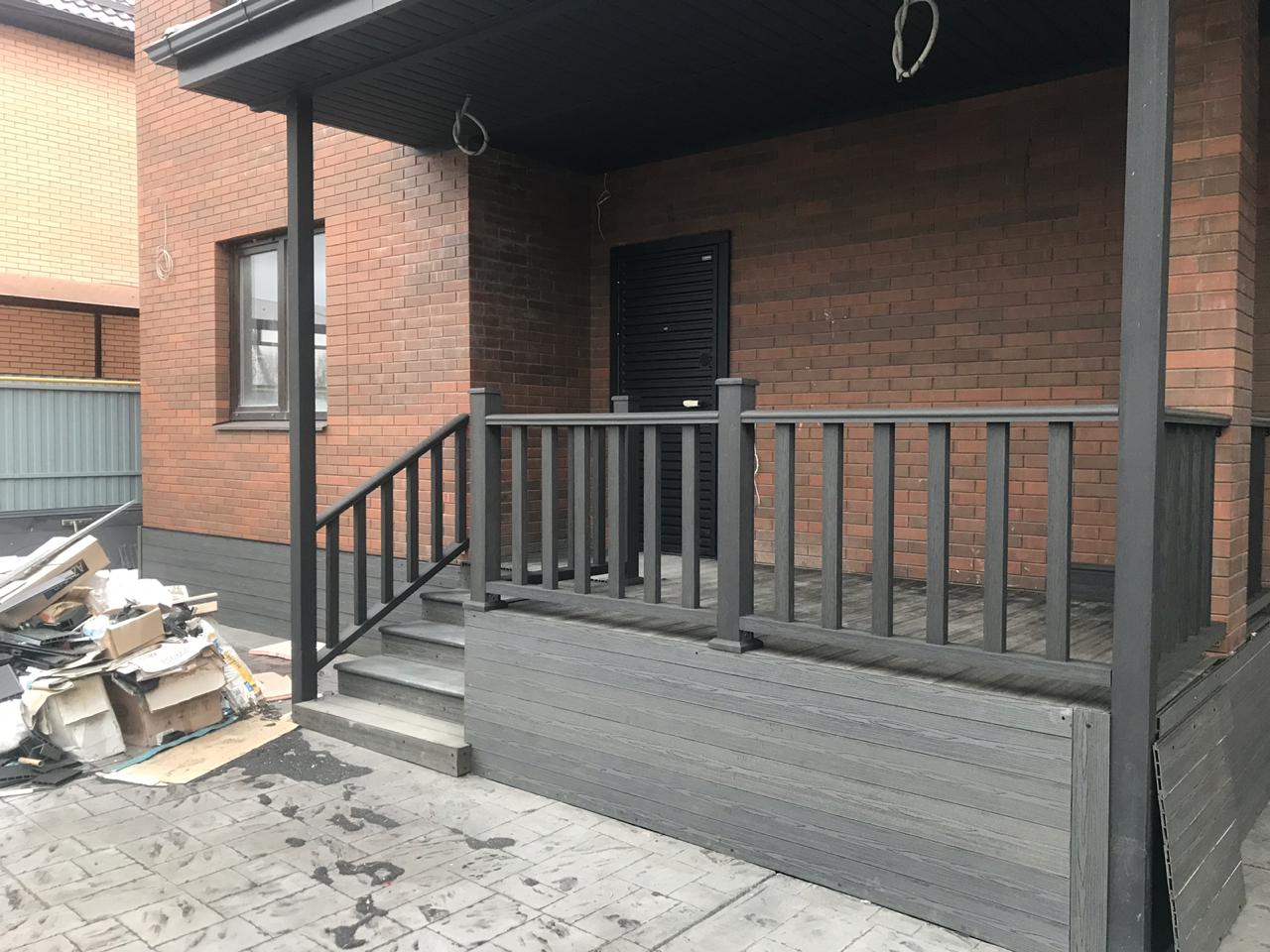 Краснодар, нижний Казачий Хутор, частное домовладение, две террасы, декинг кантри черный, ограждения А1 черный