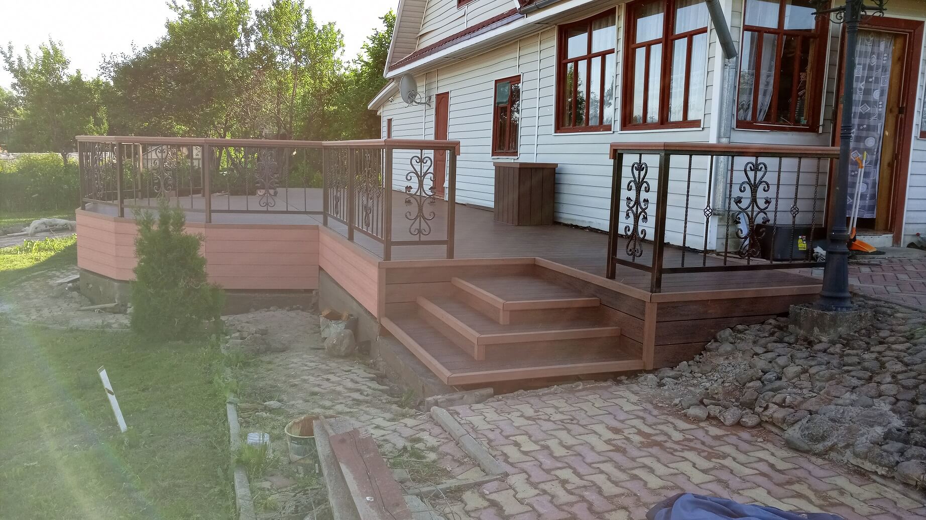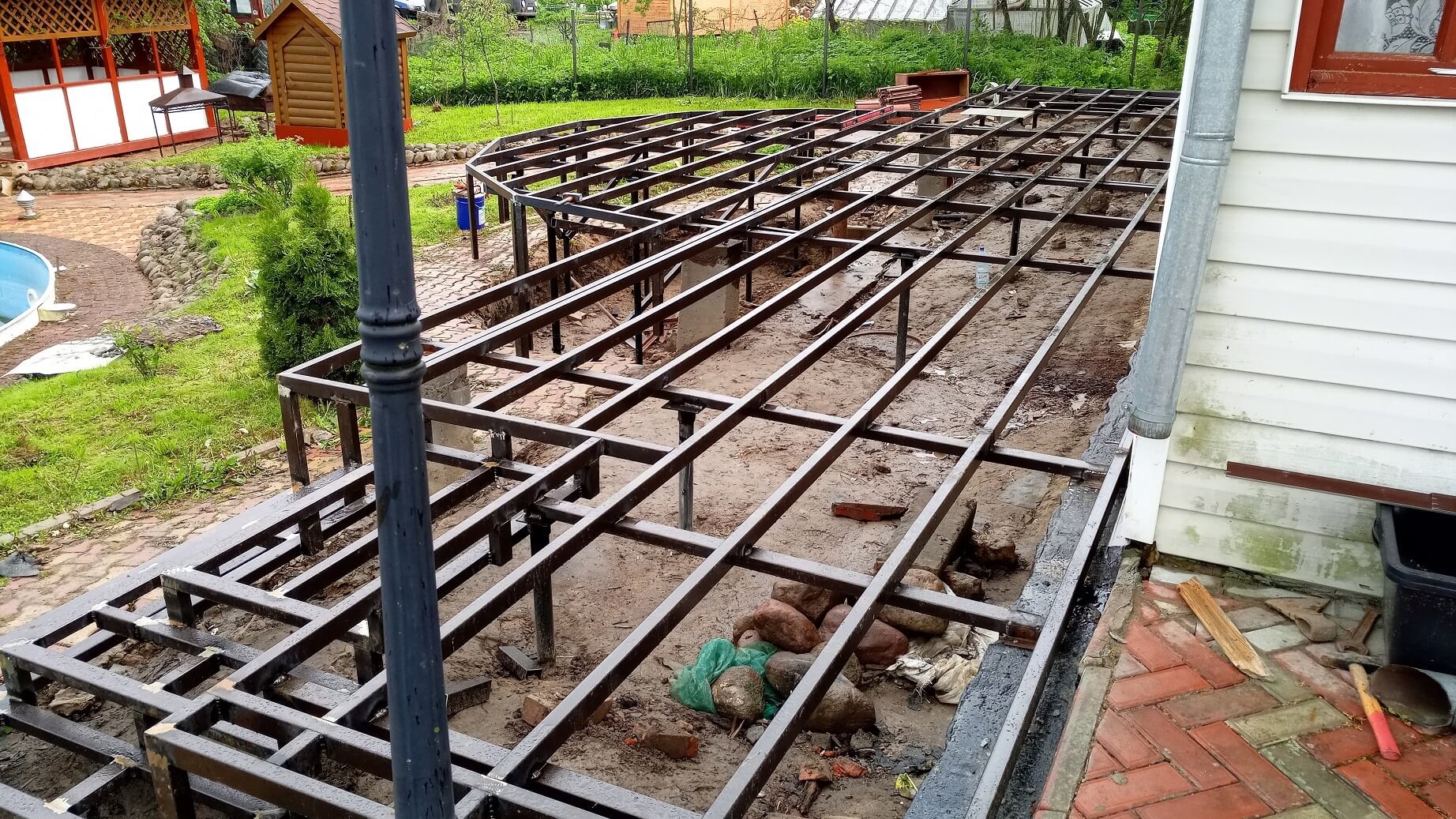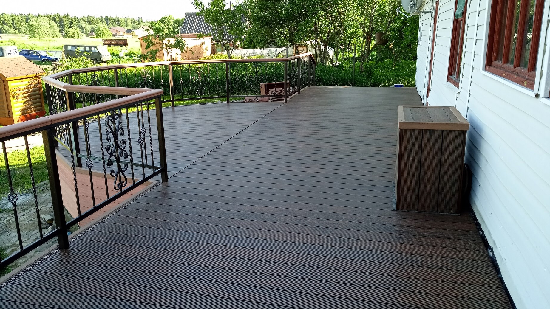 Ленинградская область, деревня Новый Бор Терраса на металлическом каркасе Террасная доска FUSION TEXTURE Палисандр